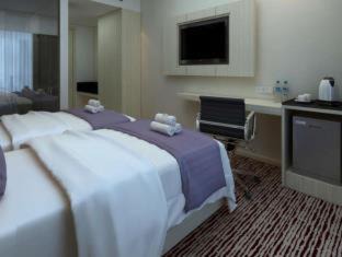 Food & DrinkTea/Coffee maker, Bottle of waterBathroomHairdryer, Toilet, Bathtub or shower, Bidet, Bathtub, Toilet paper, Toothbrush, Slippers, Shower, Private bathroom, Bathrobe, Free toiletries, Body soap, Shampoo, TowelsGeneralTrash cans, Safe, Interconnecting room(s) available, Air conditioning, Carpeted, Smoke Alarm, Key card access, Fire extinguisherMedia & TechnologyCable channels, Flat-screen TV, Telephone, TVKitchenRefrigerator, Electric kettleLiving AreaSitting area, DeskViewView, City viewServicesWake-up service, Executive lounge accessBedroomChildrens' cribs, Wardrobe or closetAccessibilityAccessible by elevator, Upper floors accessible by elevatorRoom AmenitiesSocket near the bed, Clothes rack, Non-feather pillowPool and SpaPool towels, Rooftop pool |