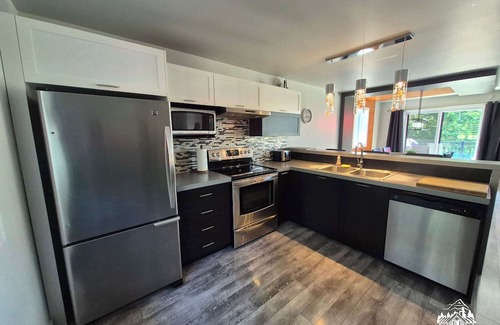 This cozy chalet is divided into two units: the main house and the Loft, which is accessible directly from inside. The chalet is never rented separately, so the entire property is fully dedicated to you. You will enjoy a spacious, private, and comfortable space, perfect for a relaxing getaway.