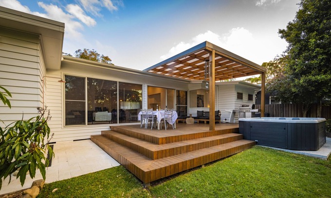 This house is the perfect holiday retreat in which to relax and enjoy time with family or friends. Prepare a BBQ on the back deck while the kids play on the lawn. Sit back and unwind in our gorgeous 8 person spa under the stars.
