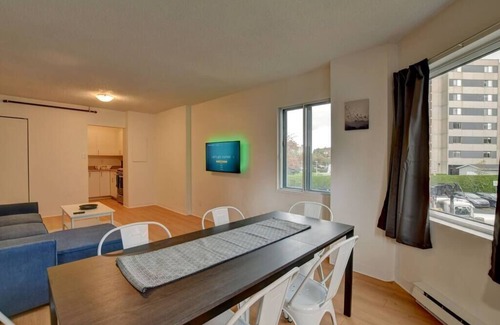 3 1/2 spacieux et entièrement équipé au centre-ville de Laval. Parfait pour contrat de travail, relocalisation, étudiants. Garde de sécurité 24h/24, gym, cinéma, vous serai confortable et en sécurité. Cuisine complète, wifi rapide et fiable parfait pour des longs séjours.