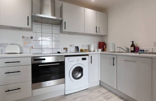 The kitchen is equipped with an oven, washing machine, dishwasher, fridge freezer, microwave, toaster, and kettle, you'll have everything you need to feel right at home during your stay.