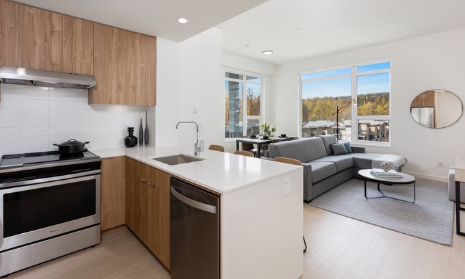 Nestled in Port Moody, this 2-bedroom, 2-bathroom apartment brings it all within your reach. Fans of nature and the outdoors will love being 3 minutes by car from Coquitlam Centre and 3 minutes from Rocky Point Park. You'll easily make the quick 4-minute drive to Evergreen Cultural Centre or the 6-minute drive to Percy Perry Stadium. Check out other neighborhoods and see more of Port Moody by hopping on a metro at Inlet Centre Station, just 5 minutes away by foot.