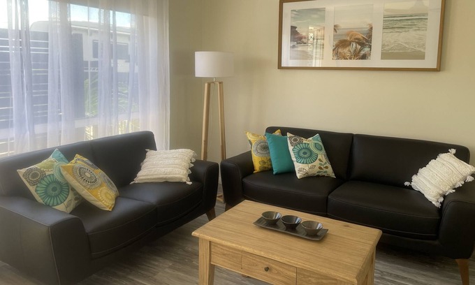 Lovely newly decorated duplex in a quiet street enjoy a BBQ on the lovely private patio after a busy day at the beach. 2 min walk to Moobal creek 20 min walk to