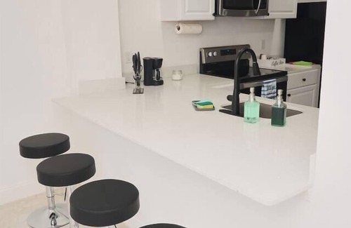 Newly furnished with stove, microwave, refrigerator, toaster, coffee maker, kettle, all dishes, utensils, pots and pans included. Toiletries, hairdryer, linen and towels provided. Beach towels and chairs provided for fun at the Beach! Smart TV, Wifi and board games for entertainment.
