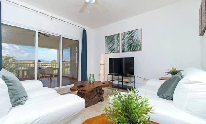 Modern 2BR condo in Sosúa Ocean Village one of the most secure, family-friendly beachfront communities on the North Coast. Features king beds, smart TVs, full A/C, fast Wi-Fi, and a large terrace. Just steps from pools, water park, gym, spa, and restaurants (fees may apply). 5 mins to Sosúa, 10 mins to Cabarete. Includes parking, 3x/week cleaning, full kitchen, linens & more. Perfect for family getaways or relaxing retreats