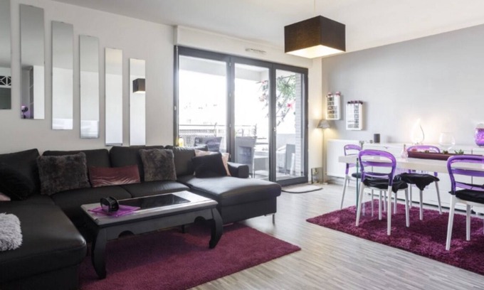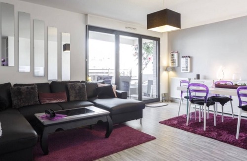 With family or friends, this modern and bright apartment will seduce you by its space and its tasty decoration.