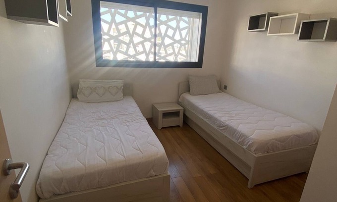 Nestled in Rabat, this delightful apartment offers 3 cozy bedrooms - one with a queen bed and two with twin beds. With amenities like AC, heating, WiFi, and a washing machine, guests can relax and unwind after a day of exploring. The three bathrooms, each equipped with a shower and bidet, ensure convenience for all. Whether you're traveling with family or friends, this cool apartment provides the perfect home base for your stay. We look forward to welcoming you to our place.
