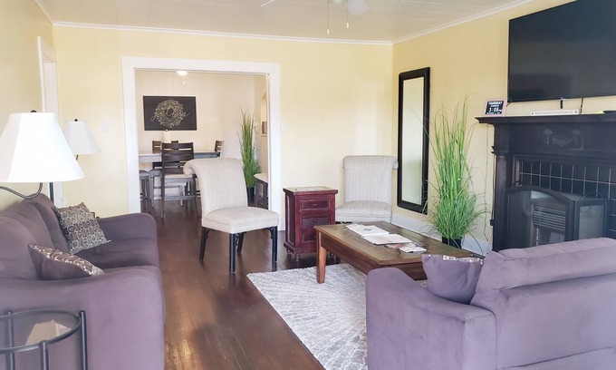 Josie's Haven laundry room has all the necessities needed to wash your clothes before you return home. The kitchen is well stocked with dishes and utensils plus a Keurig with a robust selection of coffee. In addition, JH has the basic amenities of a hotel (travel size hygiene products), hairdryer, large comfy bath towels, and WIFI. You and your family can enjoy the spacious living areas that are equipped with 55 inch smart TVs every room, wifi stereo, and family games. You can relax in the lovely sitting areas in the front and back garden. There is parking space for two vehicles and the home is protected by cloud surveillance. JH is also sparkling clean and goes through rigorous sanitizing after and prior to each new stay.