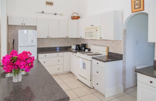Kitchen: Fully equipped, includes oven, hob, fridge/freezer and ice-maker, dishwasher, microwave, toaster, kettle. China and cutlery, saucepans and cooking utensils are provided. Utility room: washing machine, iron and ironing board. Living Rooms: Large, open plan living area providing a comfortable and relaxing environment. There is cable TV, Internet, and an assortment of books. Sliding patio doors lead onto a spacious patio and private swimming pool. Linen/towels and beach towels are included. Maid service is available as required at an additional cost, payable locally. A cell phone with pay as you go card is provided along with a list of emergency and useful numbers.