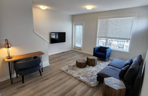 15 mins away from YYC and 20 mins away from Downtown Calgary / The Saddledome! The nearest bus stop is 2 minutes from the apartment. The buses serve major bus routes which makes it easy to move around. There is free street parking.