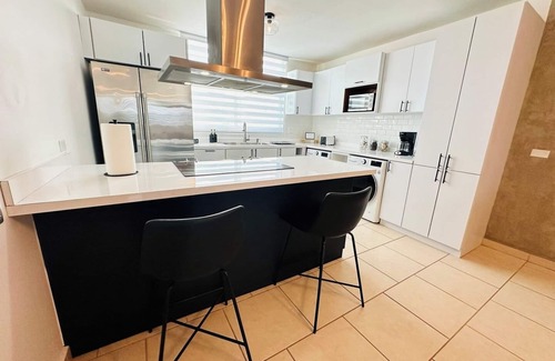 Villa Bella Apt is a two story 3 bedrooms, 2.5 baths penthouse retreat in Vega Baja, PR with panoramic ocean views. In a beautiful gated community, this cozy home accommodates up to 7 guests with 3 bedrooms 2.5 baths, fully equipped kitchen and It offers a comfortable visit. Enjoy smart TVs, ACs in all rooms, and a washer/dryer. The 2nd floor terrace features lounge chairs and a seating area. Guests have access to a pool, basketball court, and playground. The beach is a short 5 min drive away.