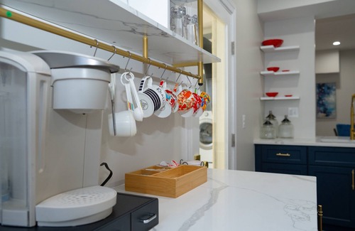 The kitchen is fully equipped with everything you need to cook a meal. Additional kitchen accessories include: air fryer, crock pot, toaster, waffle maker, etc. The breakfast bar in the kitchen provides a convenient space to serve food or eat a quick meal.