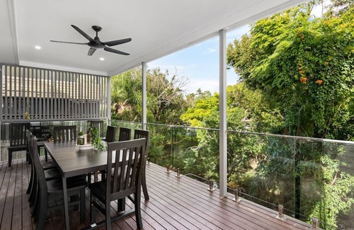 Set in the leafy suburb of Bardon, this charming two-level home is perfect for families or groups. With 4 comfortable bedrooms, generous living areas, and a relaxing outdoor deck, it offers both space and comfort. Located just minutes from local cafes, parks, and Brisbane CBD, enjoy the perfect mix of quiet retreat and city convenience. Ideal for extended stays or weekend getaways in a peaceful setting.