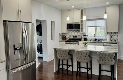 Experience the charm of Lincolnwood in this freshly remodeled 4-bedroom Bungalow. Nestled on a quiet street, minutes from downtown, this cozy retreat offers three king bedrooms and a fun bunk bed room. Enjoy working in the dedicated office space or unwind in the outdoor oasis with a fire pit, perfect for s’mores and hot cocoa. The fully equipped kitchen and dining area are ideal for small gatherings, making it a perfect home-away-from-home for families or friends.”