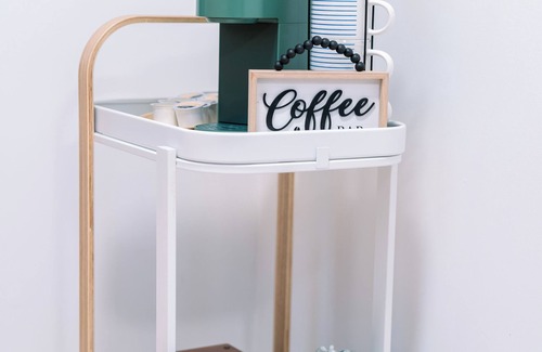 * Well equipped kitchen (Keurig Coffee Machine, K-Pods, Multiple Coffee and Tea options, Sugar, Salt and Pepper, Oil, Vinegar, Granite counter-top, Stove, Dishwasher, Fridge, Freezer, Microwave, Kettle, Toaster, Cutlery, Knives, Spatulas, Cutting Boards, Mugs, Pots and Pans, Daily and Wine Glasses, Cups, Serving Bowls, Dinner Plates and Bowls)