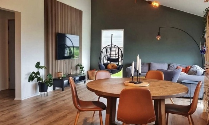 Spacious 4 bedroom apartment with everything you need for a relaxing stay in Iceland. Fully equipped kitchen, 4 bedrooms, 65'' Flat+screen TV connected with Netflix and Disney+, a bathroom with a shower and a bathtub, guest toilet and laundry room with a washer and a dryer.