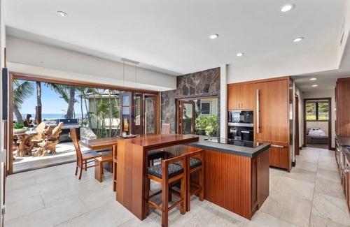 Step into a realm of seamless indoor-outdoor living as three expansive pivot door systems invite the outside in, blurring the boundaries between the luxurious interiors and the majestic ocean vistas beyond. The expansive pool lanai beckons you to unwind amidst the tropical splendor, promising an enchanting escape like no other.