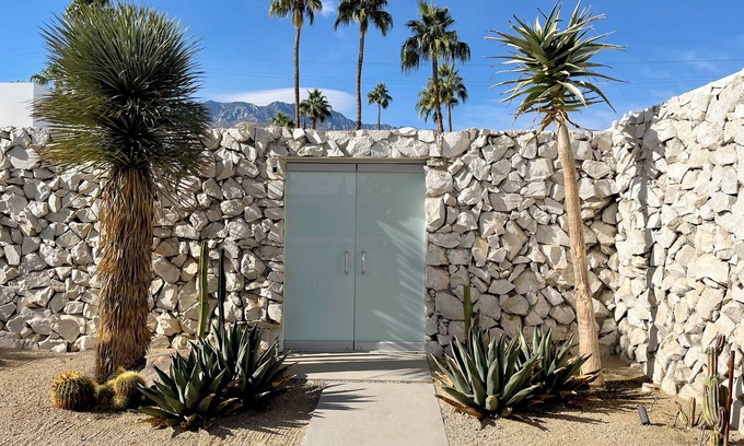 When you arrive, you will notice the unique and stunning façade of this mid-century gem nestled in the Sunmor neighborhood of central Palm Springs.