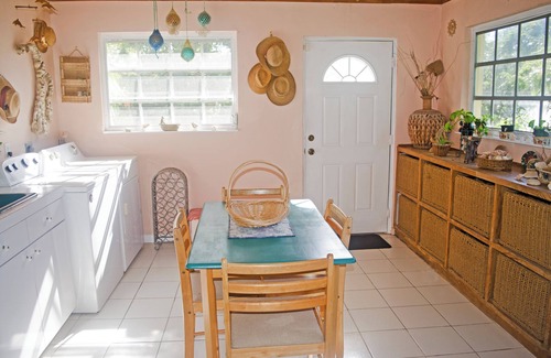 When the sun goes down, you can cook indoors in the well-equipped kitchen and dine in the formal dining area surrounded by windows looking out on the moon-lit water, or you could return to the tikki bar and enjoy the cool evening air on the water's edge, maybe also cooking outside on the gas grill.
