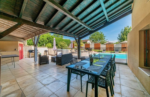 Housed in an old farmhouse, the 410m2 cottage offers 7 large main rooms. you can also enjoy the 10X5 heated pool, the proximity of the river and fishing, canoeing or paddle available to you. For the latter you will have access to the pontoon and six canoes and two paddles to go for a ride on the river 'LE LOT'.
