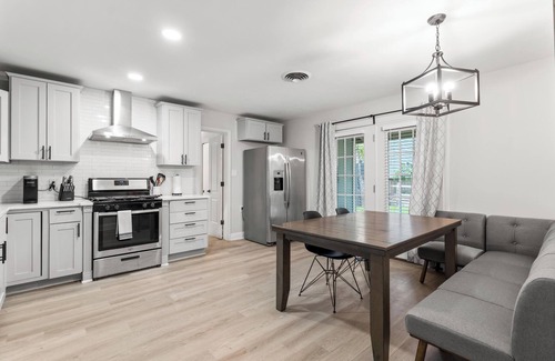 Looking for a monthly rental? Look no further! We took every consideration possible for guests needing an extended stay. Step into our inviting abode, where the heartbeat of Austin awaits. This delightful residence boasts four cozy bedrooms and two pristine bathrooms, ensuring ample space for families, groups, or friends. No matter the group, you will find a fully stocked kitchen, squeaky clean bathrooms, spacious common areas and hotel comfort linens.