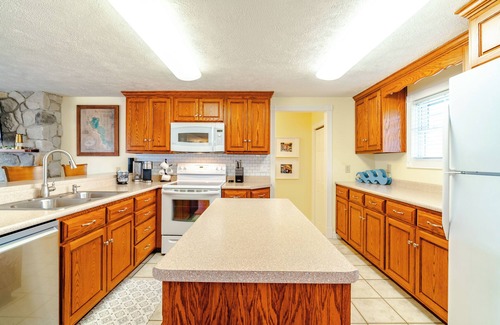 Interior: Home features an open concept living room, kitchen, and dining area. Fully equipped kitchen features tons of counter space and an island plus breakfast bar that seats 4 people. The living room has space enough to play games, watch your favorite movies on the large screen Smart TV or just relax and take in the gorgeous view of the lake. With three queen and two twin beds, the home sleeps 8 comfortably, giving you plenty of space for the entire family. The house also has two full baths along with a washer and dryer.
