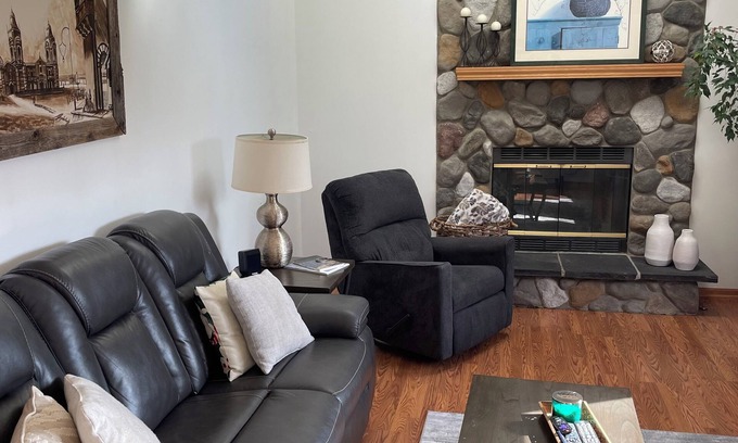 This 5-bedroom house is perfect for your escape to Kenosha. With 1 king bed, 2 queen beds, 1 full bed, and 1 twin bed, guests will have plenty of space to unwind. The backyard is an amazing space to relax. With a brick fire pit and Adirondack chairs for your friends to enjoy. Help yourself to firewood and make a cozy fire and enjoy s’mores The property features soothing amenities like AC, WiFi, washer, and dryer, and of course, help yourself to our basket of snacks and water for our guests when they check in. The basement features a full bathroom with shower and a private bedroom with large television along with activities such as foosball and air hockey to enjoy. We hope you choose to make this your getaway home where you can enjoy, relax and have fun with your friends and family. House rules. No smoking or vaping on the premises. No parties. No additional guests in the home at anytime besides the number of people on the reservation. Remove shoes on carpet.