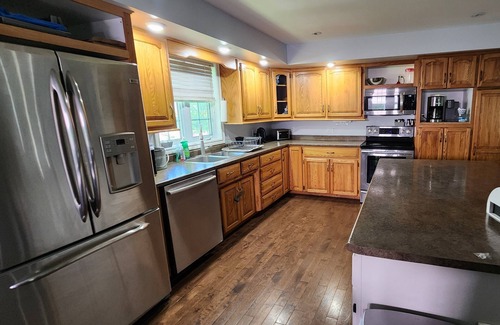 Welcoming all friends to your vacation Home Base! Full of natural light and well appointed for large groups or families. Spread out on 2 floors, this home has 2 separate living and dining areas. Located in a quiet and immaculate neighborhood, your group will be just minutes from everything the city has to offer. Large covered deck (with BBQ) overlooking a great back yard where the kids can play and walking distance to 2 parks, 5 minute walk to the Confederation Trail. Parking for up to 4 cars.