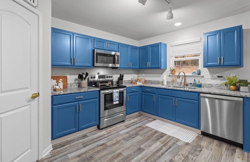 Escape to this lake house in picturesque New London. This newly remodeled property boasts 5 bedrooms, including 1 king bed, 2 queen beds, and 4 twin beds. With 3 bathrooms there is room for everyone. Lake Badin is across the street and ready to greet you.