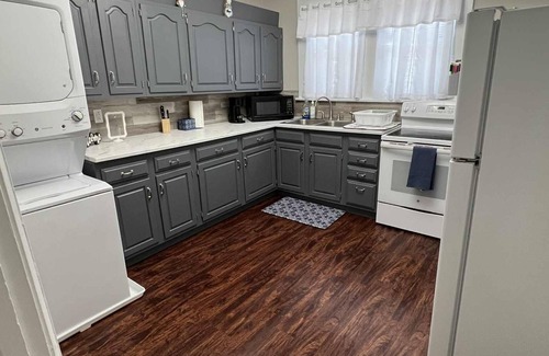 Stay comfortably in Uniontown at this 5-bedroom house. With 2 queen beds, 2 full beds, and a trundle bed, there's plenty of space for everyone. The house also features 2 full kitchens, 2 stackable washer/dryers, and 2 large living rooms with a futon for additional sleeping arrangements. This 2600sq ft home is perfect for your next gathering and a great place to call home while you're away. We hope to welcome you to Uniontown soon!