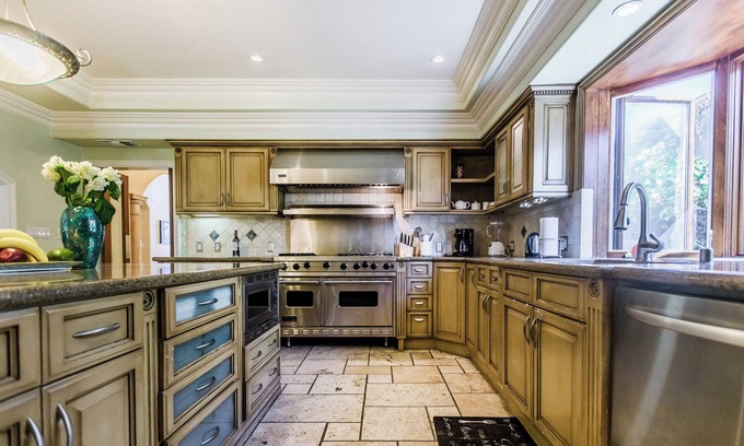 Beautiful home w/ guest house just minutes away from amazing shops & restaurants on Ventura Blvd! Gorgeous tree-lined property providing natural shade over gated pool & jacuzzi. Large grassy backyard w/ BBQ, kitchenette, bar & lounge seating for outdoor dining. Master suite w/ Smart TV, indoor fireplace, & floor-to-ceiling glass doors overlooking stunning backyard views. Bonus game room w/ billiards. Private guest house w/ queen bed, kitchen, & living room. Great home for families, couples, or business travelers!