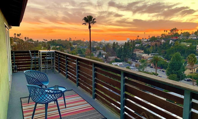 The Silverlake Treehouse is the upstairs unit of a duplex perched on a quiet tree-lined street with an established garden overlooking one of the most charming sections of Silverlake in Los Angeles (sometimes called “the Brooklyn of the west”). Immerse yourself in the Silverlake vibe everyday with a short ten minute walk north to Silverlake Reservoir, one of the most iconic and popular features in the area, offering a 2.25 mile loop of improved paths for walkers and runners. Or choose between one of two short sets of famous Silverlake “secret stairs” adjacent to the Treehouse and stroll down to some of the best dining and entertainment in the area. LAMILL Coffee, Botanica Restaurant and Market, L&E Oyster Bar are all within a 5 minute walk, as is some lovely boutique shopping. The Treehouse is situated in an excellent, quiet mid-city location, with easy access to Hollywood, DTLA, Pasadena, and the San Fernando Valley.