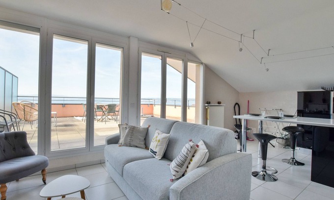 Spacious apartment with terrace, pets allowed and parking is located in Evian-les-Bains. Spacious apartment with terrace, pets allowed and parking provides accommodation, featuring TV, Balcony/Terrace, Security/Safety, among other amenities. This Apartment features TV, Balcony/Terrace, Security/Safety, to make your stay a comfortable one.