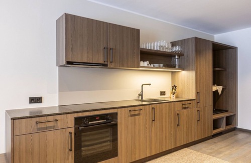 This 60m² apartment comfortably accommodates up to 5 guests. It features 1 bedroom, 1 bathroom with a shower and WC (hairdryer provided), a living-dining area with a kitchenette, and a spacious 52m² terrace. Enjoy restful sleep in the comfortable double bed and single bed, and the 40m² living area offers additional space with a double sofa bed for two. Free Wi-Fi is available at Brixental Suites Hopfgarten. The Brixental Suites Hopfgarten are located in Hopfgarten im Brixental, Tyrol, directly on the piste (Ski-in/Ski-out). The property is just a few meters from the Hohe Salve valley station and includes the Kitzbüheler Alpen guest card. A free underground parking space is also available for guests. The fully equipped kitchenette includes all necessary utensils, a ceramic cooktop, oven, refrigerator with freezer compartment, and dishwasher, along with a toaster, kettle, and Nespresso coffee machine. A small starter kit with dishwashing tabs, detergent (20ml), a sponge, trash bags, and cleaning and dish towels is provided upon arrival.