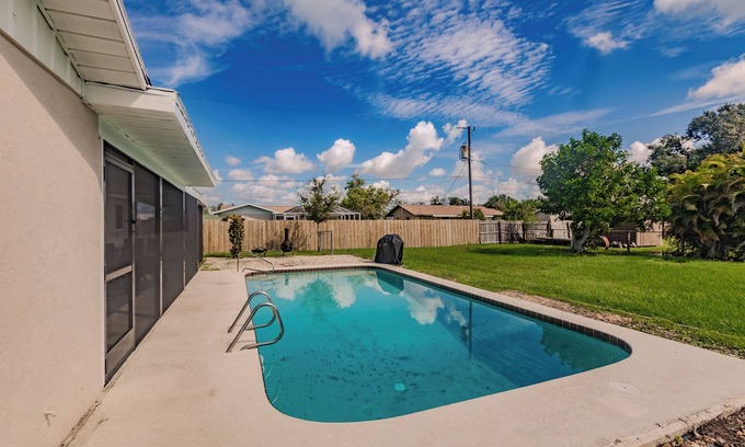 Escape to our peaceful 3-bedroom, 2.5-bath home, perfect for families. Enjoy the large pool and expansive backyard, ideal for sunny Florida days. Fire up the outdoor grill for family barbecues while the kids splash around.