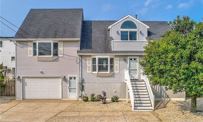 ******ONLY 3 MINUTE WALK TO BEACH******** Views of the bay and a great place to make memories with your family or multiple families. 6 bedroom, 3 bathroom, 2 living area beach house in Long Beach Island. 2 blocks from the beach. 1 block from the bay. Multiple beds in bedrooms. Beds include: 5 queen beds (1 pull out couch), 10 full (4 full over full bunk beds), 2 twin. Spacious backyard with two cornhole sets. Balcony with bay views. 2 very large living rooms with cable and Netflix . WIFI. Outdoor shower. 2 washers/dryers. Extra Refrigerator in Garage. 12 Beach Badges supplied for summer season. Bikes to travel back and forth to beach with. Only a 30 second walk to see great sunsets.