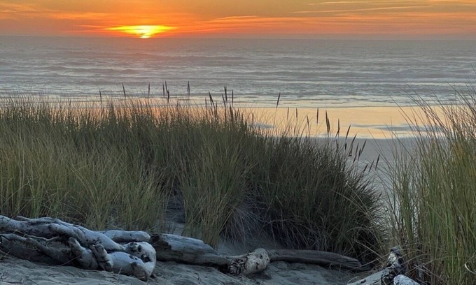 Step onto the beach from the back patio of this spacious, single-story beachfront home. Whether traveling for business or leisure, you can relax in the expansive living area featuring ample seating, a 70” smart TV and office space. Enjoy ocean sounds and stunning sunsets from the couch or step out to the patio for a stroll on the beach. Three beautifully appointed bedrooms—two with en-suites—and a third bathroom, ensure privacy and comfort. Located between Yachats and Newport, our meticulously kept home has all the essentials for a relaxing getaway.
