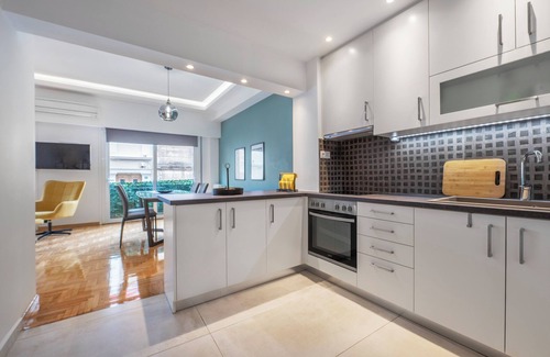 A stylish, spacious & bright two-bedroom apartment offers an amazing stay, either for business travellers on a short or long stay assignments, or serves as a holiday city escape, in one of the most hip neighborhoods of Athens.