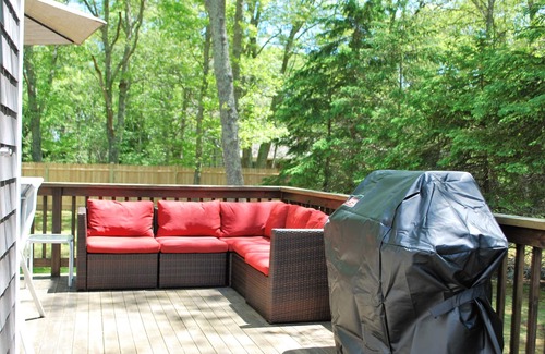 Our 3 bedroom, 2 bath renovated cape with Central A/C is your perfect Cape Cod vacation home! Situated on an oversized level lot with a spacious deck and outdoor shower. The open first floor plan includes a well appointed kitchen with views of the backyard, dining area, and living room. Downstairs you will also find the master bedroom and den with a television and futon. There are hardwood floors throughout. Upstairs there are two more spacious bedrooms and another full bathroom.