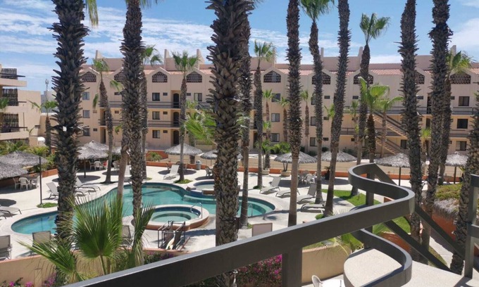 This amazing top floor, two-level condo is located in the hotel zone on the golf course, and only a short walk to the beach. The balconies overlook the cactus garden, and Vidanta #4, a par 3. The walk to downtown is approx 15 minutes. Major grocery store is within walking distance, also restaurants and bars. This truly is the best location in San Jose. Gas BBQ included.