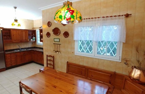 Spacious house / chalet in Gran Canaria, independent, cozy with a large garden with clean, high-quality artificial grass. Solar and photovoltaic energy, large outdoor spaces, 2 full bathrooms. Located in a very quiet urbanization, a feeling of great privacy. Outside there is a dining room-porch with a table for 6 people and a barbecue. In the backyard a second barbecue with a sink and ample space around it. On the ground floor is the spacious living room with large windows, dining room, very bright reading area, fireplace. A large kitchen, complete with utensils, with oven, quality ceramic hob and microwave, utility room with washing machine and dryer, a bathroom with shower. On the mezzanine is the piano and a complete set of music. On the upper floor there are 2 separate bedrooms and bathrooms: one bedroom with a large double bed and views of the city and the sea, and the second bedroom with two single beds, garden views. A spacious office-desk and a very bright terrace with views of the city of Las Palmas de Gran Canaria and the sea. For use in autumn and winter in each bedroom and some areas there are ceramic heating plates fixed to the wall that provide a pleasant soft heat. If necessary on cold days, gas stove and oil heater available. Wifi connection 300MB (Optical fiber, high quality).
