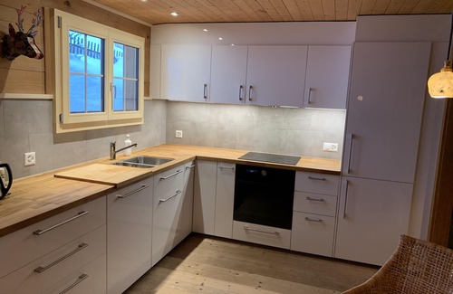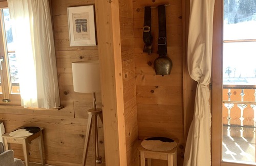 The holiday home was built in 1975 and modernized in style and preserving original details. The house is located in the beautiful Prattigau hiking area near the ski area Klosters / Davos and can accommodate 6 adults and 2 children. On the upper floor is the living area with a beautiful living room with all comfort and beautiful views all around, a separate kitchen, bathroom, children's bedroom with bunk beds and master bedroom with spacious double bed (separate mattresses) and beautiful views of the Silvretta massif. On the ground floor there are two very spacious bedrooms with double beds, a second bathroom and toilet and laundry room with washing machine, dryer, freezer and icecubes machine. The whole house has been furnished and decorated with the utmost care. The kitchen is fully equipped including dishwasher, refrigerator, freezer, oven, microwave and Nespresso machine and beautiful Bunzlau Castle dishes.The holiday home is situated in a quiet area about 50 meters above the village of Kublis on a sunny southern slope at 850 m altitude. It is 10 minutes walk to the center of the village and the (ski) bus stop and 15 minutes to the station. The garden and orchard (1000m2) offers many possibilities to relax, play and bbq (gas bbq present). The large south-facing balcony gives a wonderful view of the village below and the Silvretta massif. In the summer you will find direct connection from the house to various hiking trails including a climb to the 'Prättigauer Höhenweg' from Klosters to St. Antönien one of the most beautiful hiking areas between Prättigau and Montafon. In the winter, about 500 meters from the house, the longest alpine run of Graubunden ends the Parsenabfahrt of the ski area Klosters / Davos. By car you drive in a quarter of an hour to the parking lot of the Gotschna cabin lift in Klosters.The chalet can only be rented per week *. Rent includes bed linen and final cleaning. Tourist tax: CHF 4.50 / Person (from 12 years) per night.
