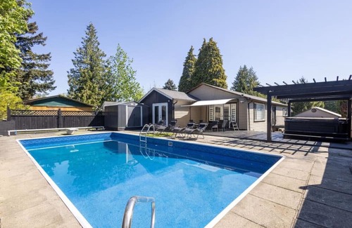 Experience the laid-back charm in this spacious 3BR 2BA house in Abbotsford, BC. Venture into the bustling city of Vancouver, hike through the picturesque forests and rolling hills, visit local farms, or spend the day luxuriating in the private backyard with the swimming pool!