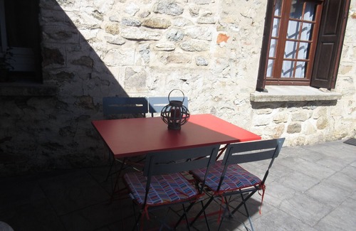 private courtyard with barbecue and tables and chairs. garage available to store ski equipment, bicycles or other.