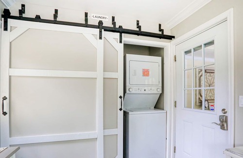 All homes on the property share a lush 7,200-square-foot outdoor space. Swim or sunbathe by the pool on a chaise lounge, relax by the koi pond and waterfall, play a game of corn hole, sit on the queen-sized bed swing under the breeze of a ceiling fan, or enjoy a drink in the bar while watching the 60-inch TV or listening to your favorite music. You also have access to a sauna, covered patio seating, and an outdoor kitchen, with five different grills (charcoal, wood-burning brick oven, or propane). Call one of the two local massage therapists to schedule a poolside massage in the covered and netted outdoor gazebo for a true vacation treat. There is also a large fenced-in area where your dog can have some supervised off-leash time. Dog clean up bags are provided.