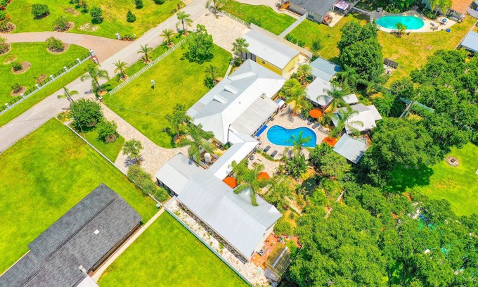 Welcome to your own slice of tropical paradise at this resort-style, family- and pet-friendly home in beautiful St. Johns, just northwest of historic St. Augustine and one block from the St. Johns River! This luxury home is perfect for events, and features four private units that can be rented individually or together for large groups.