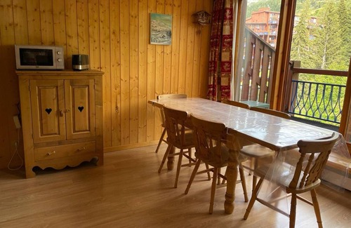 Quietly located in the Charmettoger village, in the Aiguille Grive 3 residence, at the foot of the slopes, this 80m² duplex apartment for 8 people is located on the 4th floor with a balcony.