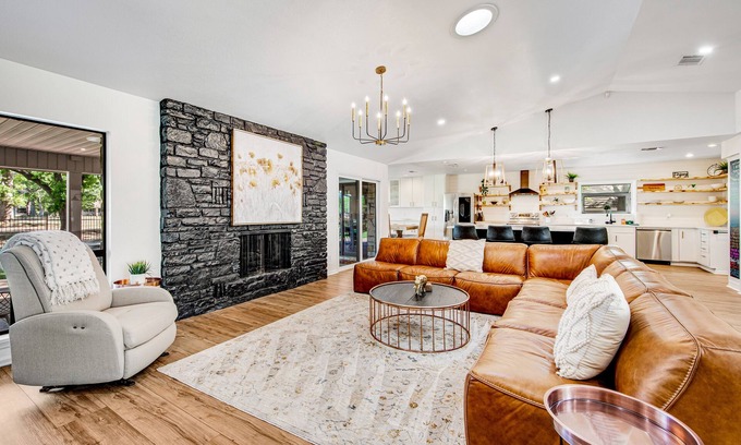Inside this stylish home, find a roomy layout with an open design, ideal for entertaining. Kick back for movie nights next to the gas fireplace in the living area, while the chef in the group whips up delectable dishes in the sparkling full kitchen. The upstairs bedroom is appointed with multiple sleeping options and a smart TV. Central AC, a private washer/dryer, and high-speed WiFi provide added convenience.