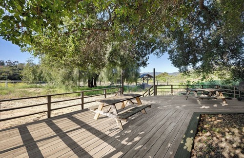Unwind in Topanga at this delightful estate. With 7 bedrooms including 6 king beds and 1 full bed, along with 5 bathrooms featuring luxurious amenities like a jetted bathtub, this tranquil retreat offers the perfect blend of comfort and relaxation. Whether you're enjoying the fitness room, cozying up by the fireplace, or taking in the beautiful surroundings, guests are sure to make fantastic memories with a stay at our place.