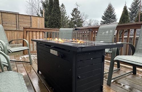 Step outside onto the private back patio, where you'll find a BBQ and dining area for outdoor meals as well as a gas fire table to cozy up to during cooler evenings. The screened in garage allows for additional space for individuals to utilize throughout their stay. Feel free to explore the beach and local trails with the 2 bikes available in the garage or make a splash with our selection of water toys at the beach! We also provide a variety of outdoor games for your enjoyment. For those cozy nights in, we offer a variety of board games and the TV is equipped with a variety of movie streaming service such as Netflix and Prime Video.